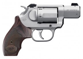 The world’s lightest production 6-round, 3-inch, .357 Magnum revolver; featuring superior ergonomics, smooth match-grade trigger, large smooth walnut grip, and brushed stainless finish.